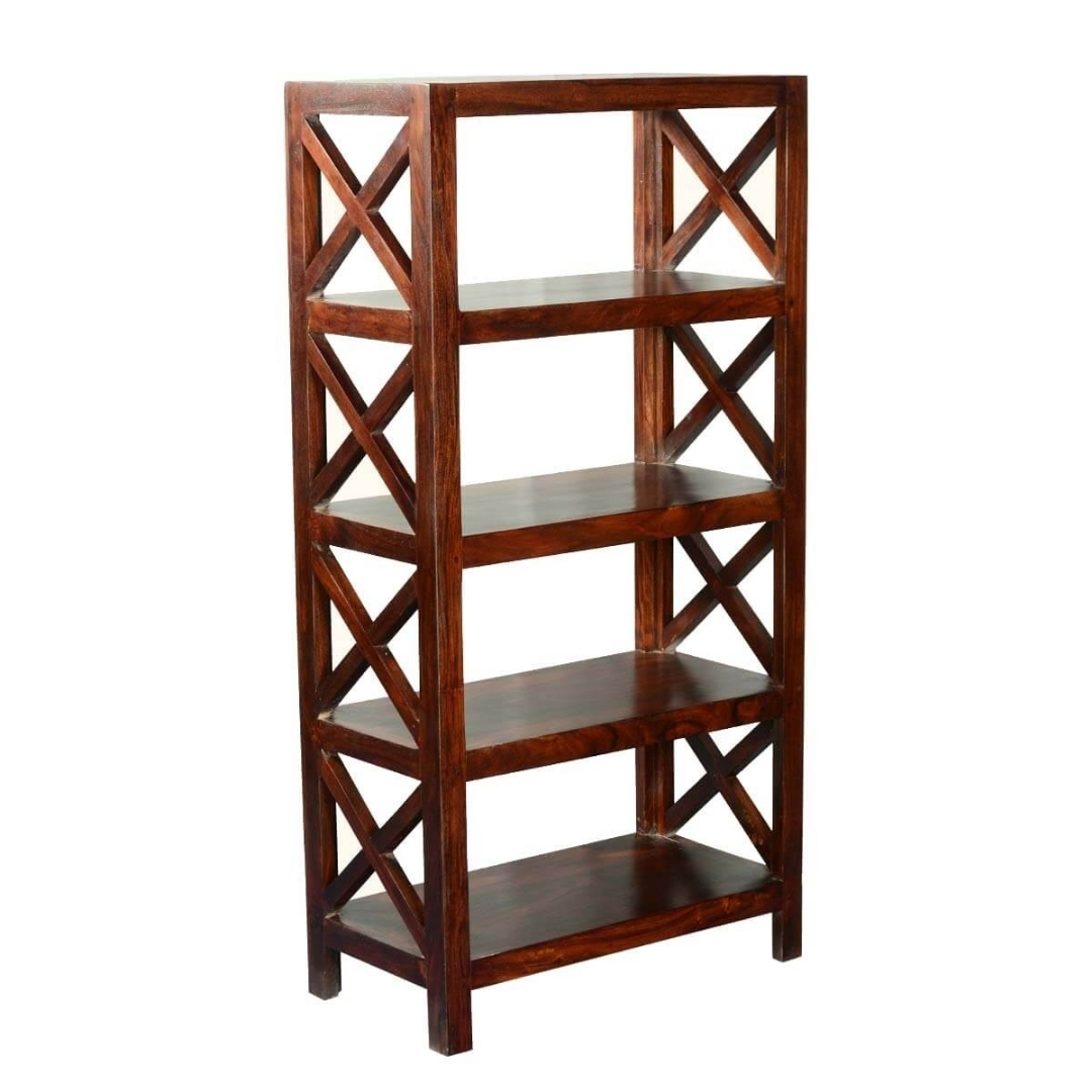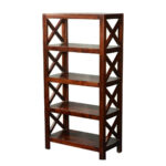 Modern Shutter X Design Wood 4 Open Shelf Bookcase Brown