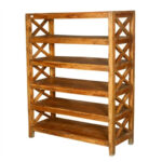 Modern Shutter X Design Wood 5 Open Shelf Bookcase Natural Large