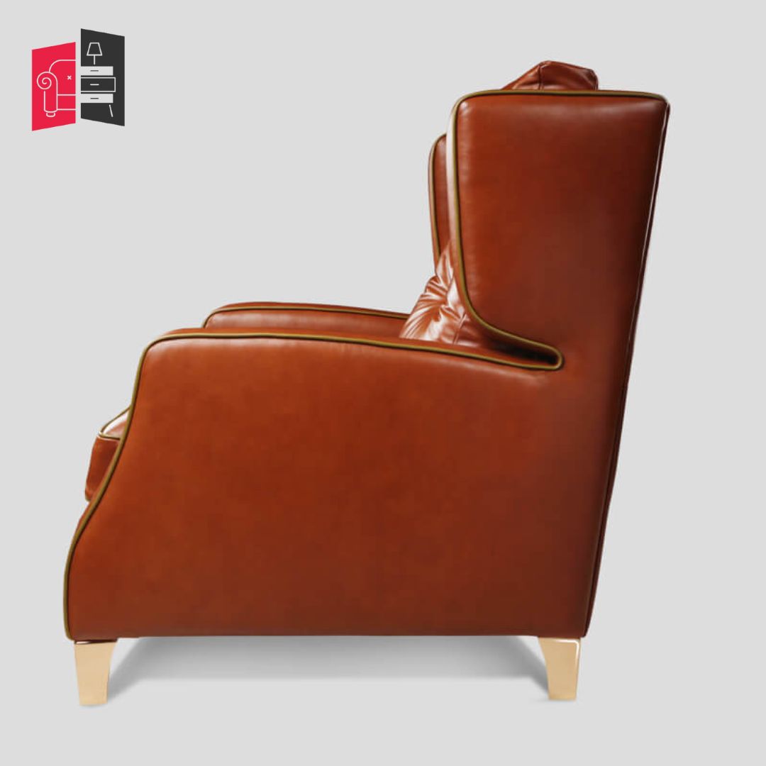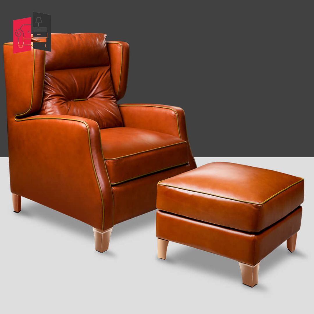 Modern Solid Wood Florida Brown Armchair With Puffee