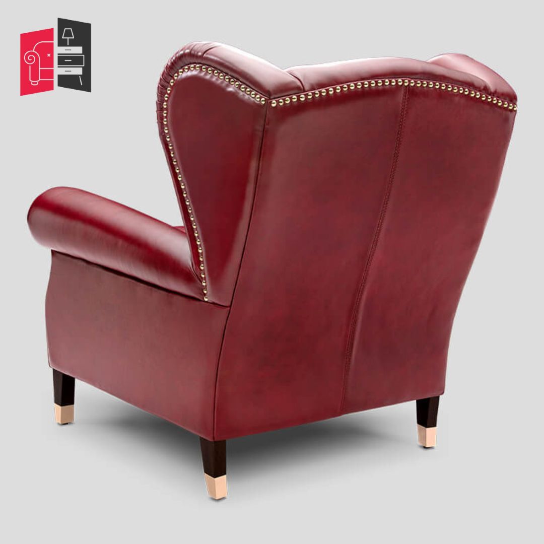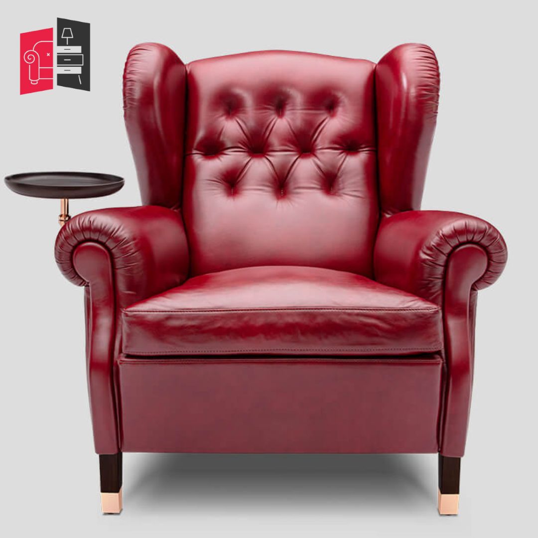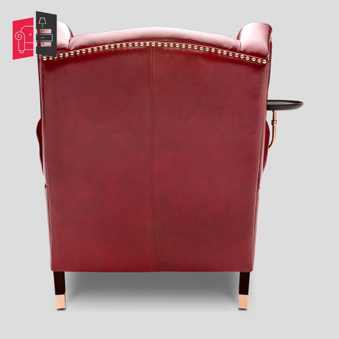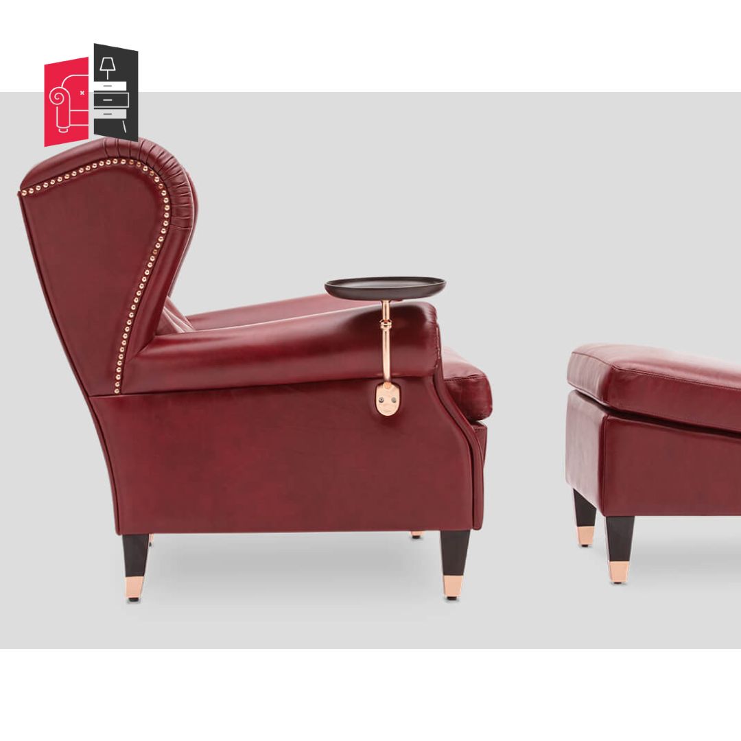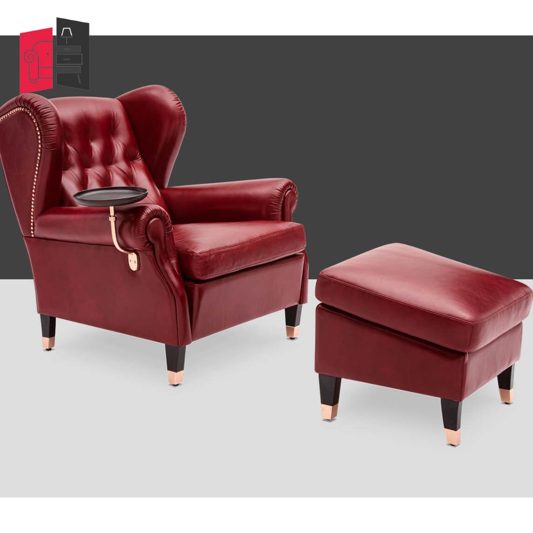 Modern Solid Wood Red Cornell Fully Loaded Armachair and Puffee