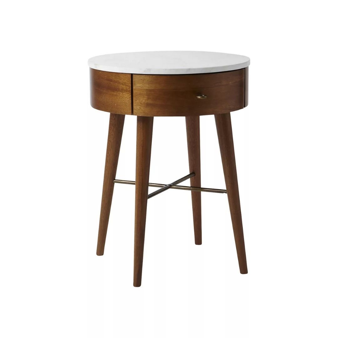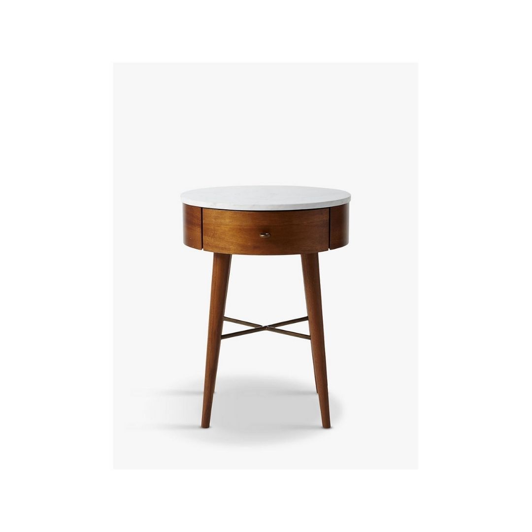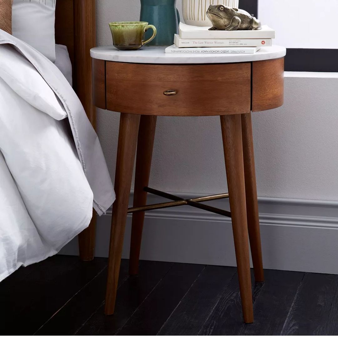 Modern Vannes Solid Wood Round Brown Bedside Table With 1 Drawer