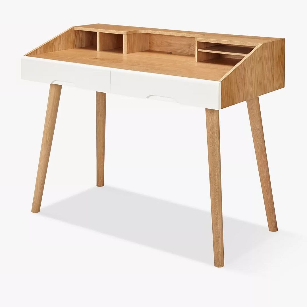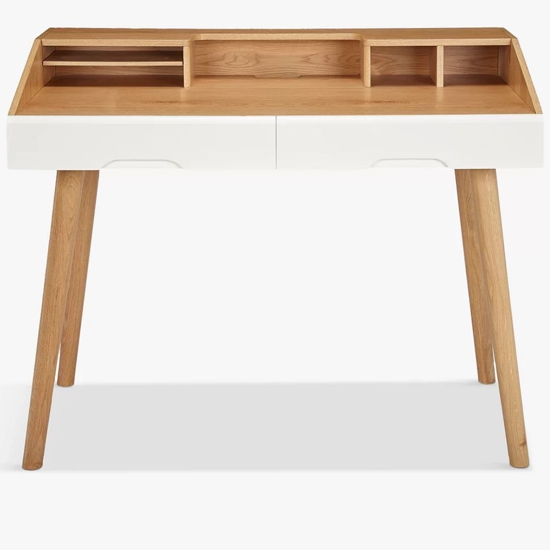 Modern Vannes Solid Wood Natural Office Desk With 2 Drawers