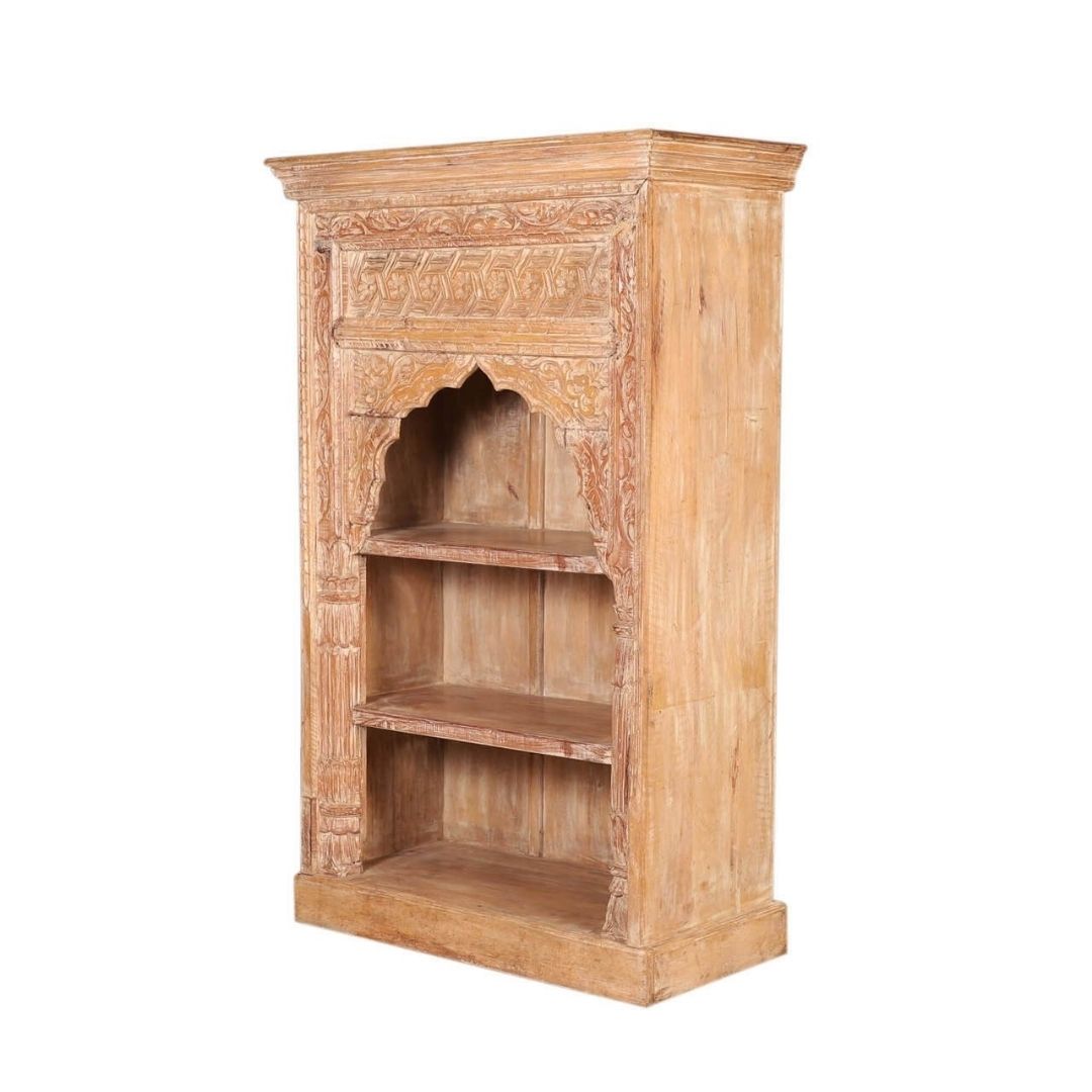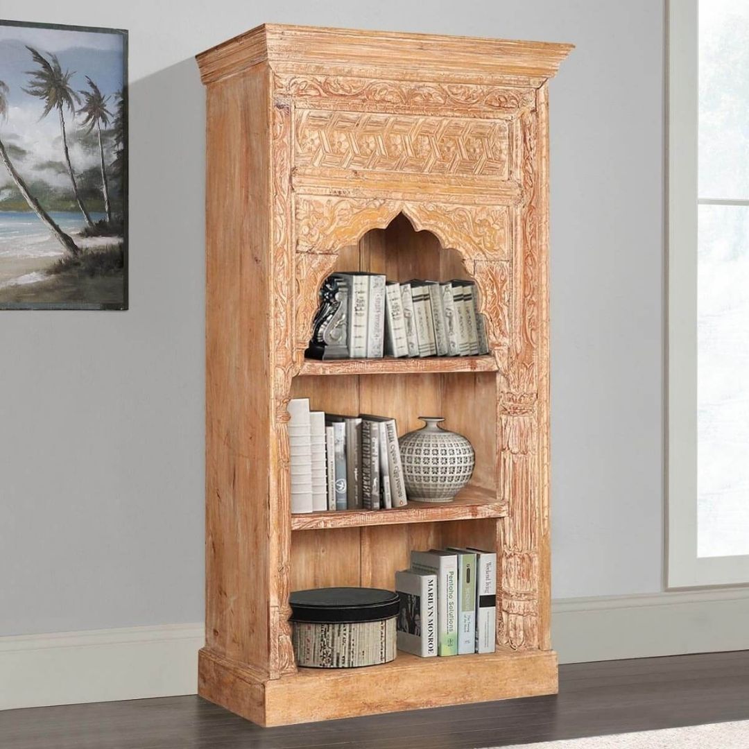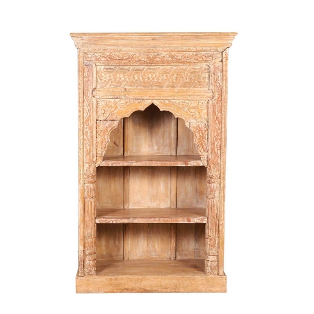 Hand Carved Indian Mehran Wooden With 3 Open Shelf Bookshelves