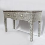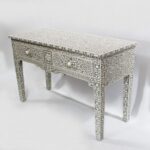 Introduce an element of visual interest to your home decor with this striking Hall table that features a stunningly detailed and handcrafted bone inlay design that is bound to catch the eye.