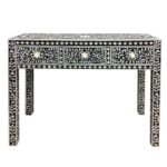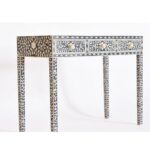Introduce an element of visual interest to your home decor with this striking Hall table that features a stunningly detailed and handcrafted bone inlay design that is bound to catch the eye.
