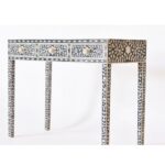 Originally handcrafted for the royal palaces of Rajasthan, the time-honored art of Bone Inlay involves intricate fragments of hand-carved buffalo bones being affixed onto furniture in mosaic-like designs. Our bone inlay collection has been handcrafted from ethically sourced buffalo bones in India, making each piece unique in its disposition.