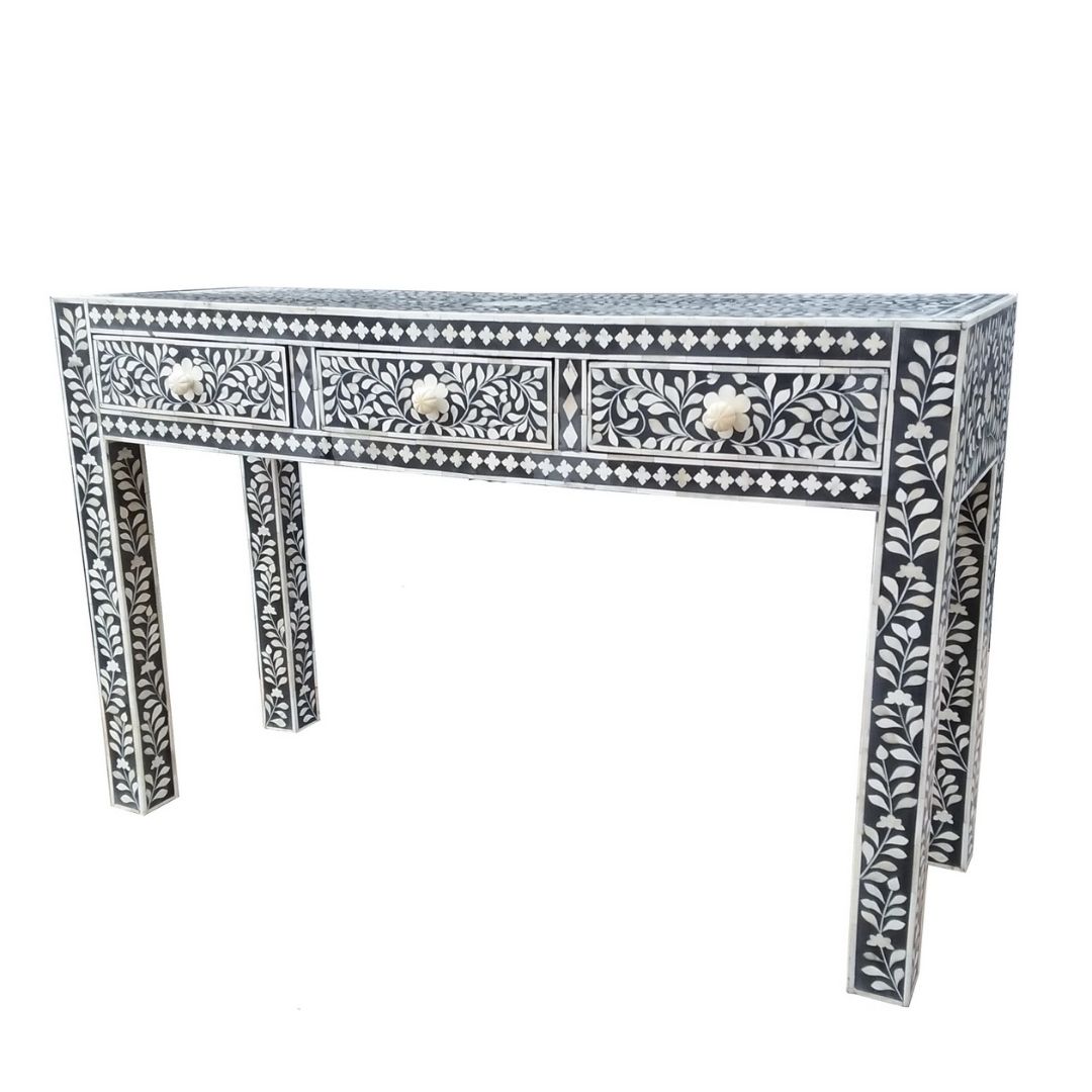 Introduce an element of visual interest to your home decor with this striking Side Table Desk that features a stunningly detailed and handcrafted bone inlay design that is bound to catch the eye.