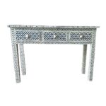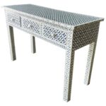 Introduce an element of visual interest to your home decor with this striking Side Table Desk that features a stunningly detailed and handcrafted bone inlay design that is bound to catch the eye.