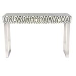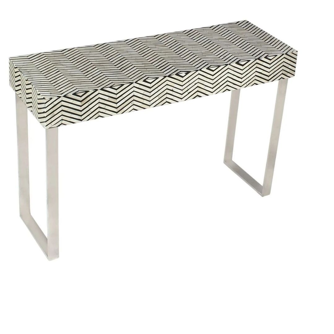 With its intricate bone inlay detailing and zig zag pattern, this hall table brings a pop of color and abstract visual interest that instantly adds a bold decorative touch no matter where it’s placed around the home.