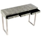 Introduce an element of visual interest to your home decor with this striking Hall table that features a stunningly detailed and handcrafted bone inlay design that is bound to catch the eye.