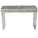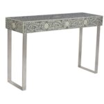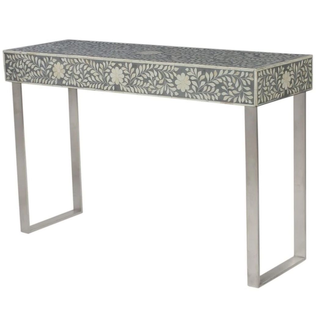 Introduce an element of visual interest to your home decor with this striking Hall Table that features a stunningly detailed and handcrafted bone inlay design that is bound to catch the eye.