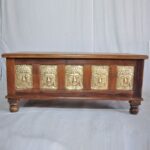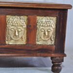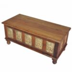 Overlay & Inset Brass Work Solid Wood Blanket Chest Box Brown (3)