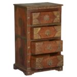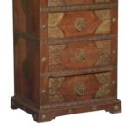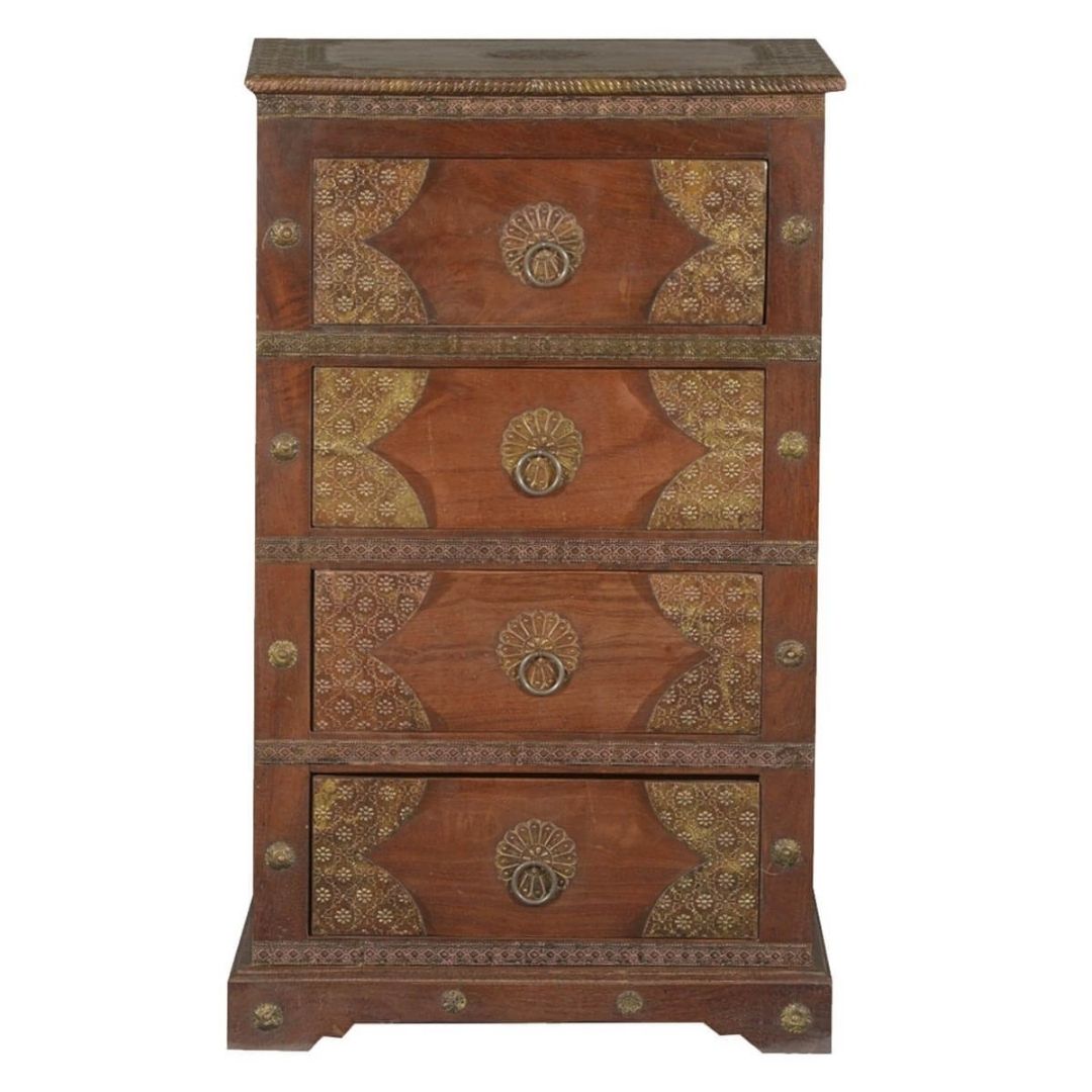 Overlay & Inset Brass Work Solid Wood Chest Of 4 Drawers Chocolate Golden (4)