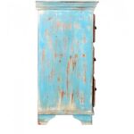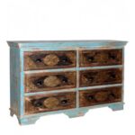 Overlay & Inset Brass Work Solid Wood Chest Of 6 Drawers Blue (1)