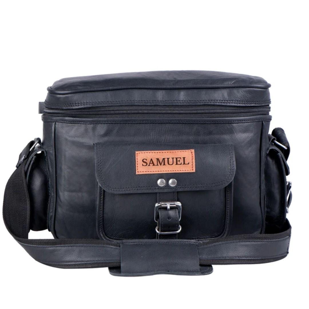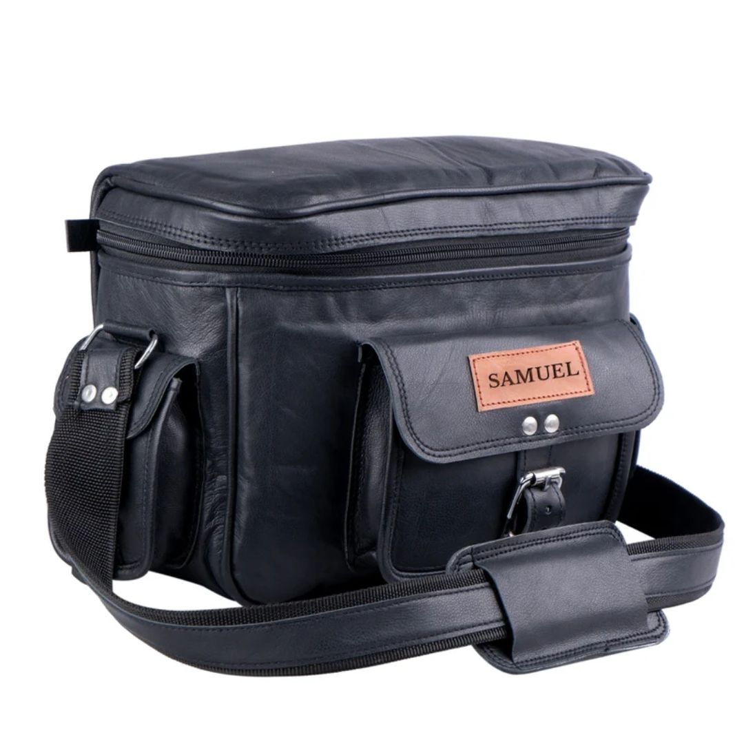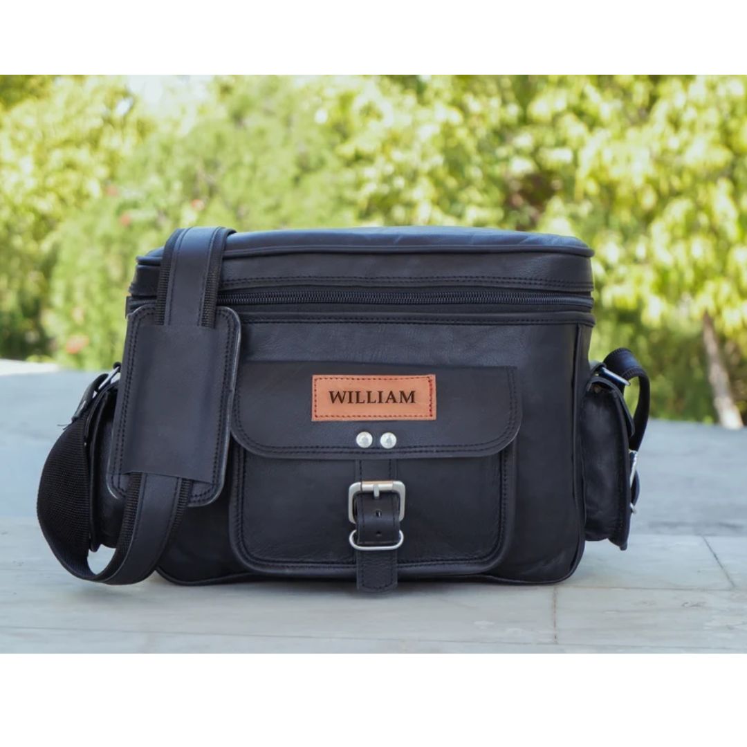 Personalized Black Leather Camera Bag, Camera Satchel Bag, Vintage Shoulder Camera Bag For Nikon, Canon, Sony DSLR, Real Leather Saddle Bag