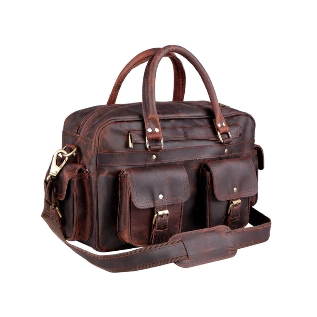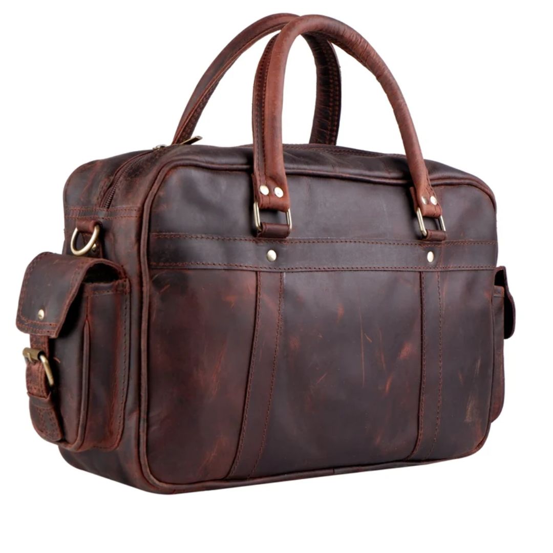 There are times when its simply nice to have more room: more leg room on a long flight, more room in the garage for extra tools, even more room in a bag to pack a few more items. We offer our rough and tumble Leather Briefcase in a large size for those “more room” scenarios. Same expert craftsmanship and same striking colors, but this one can house up to a 15” laptop, which means there’s also more interior room for those extras some adventures simply require.