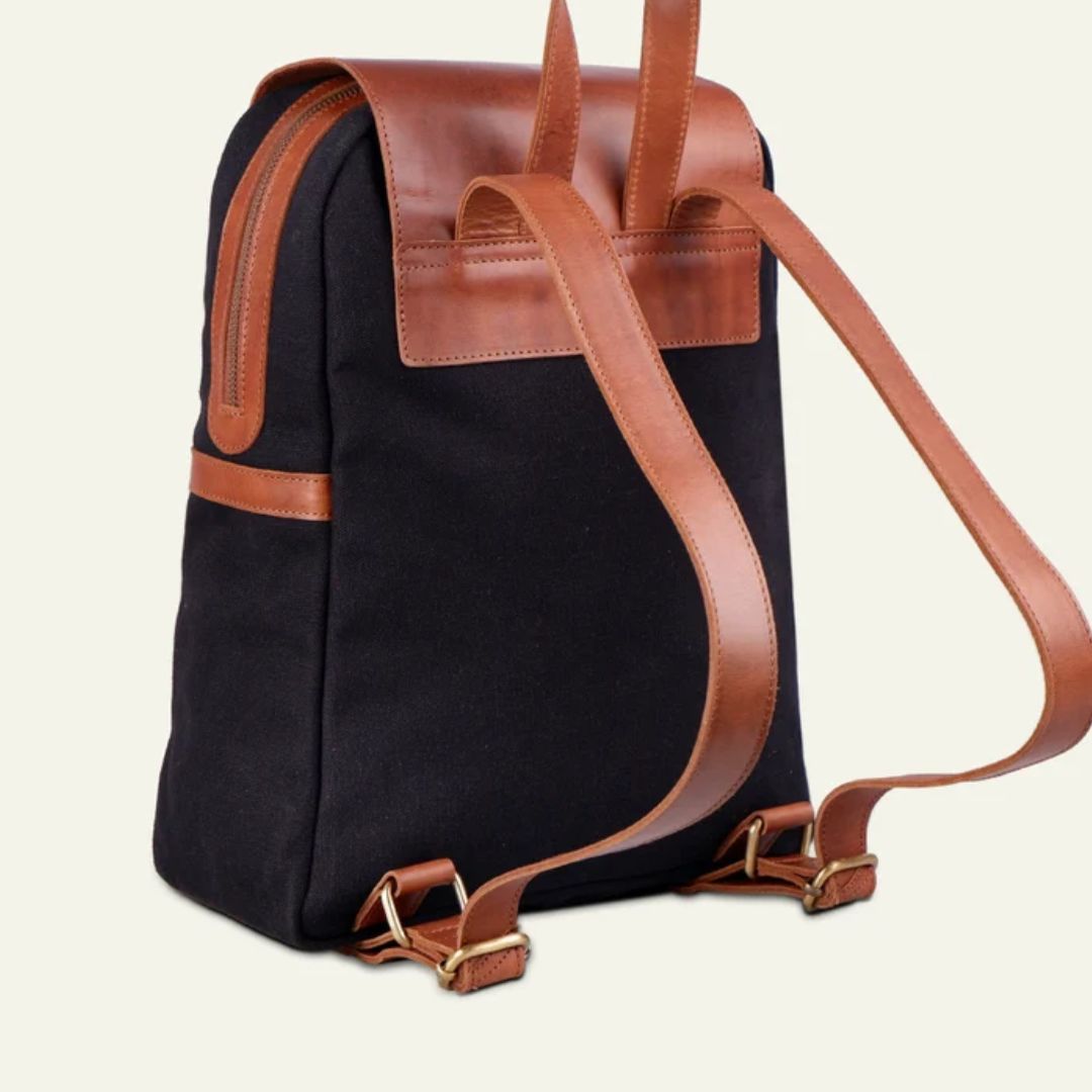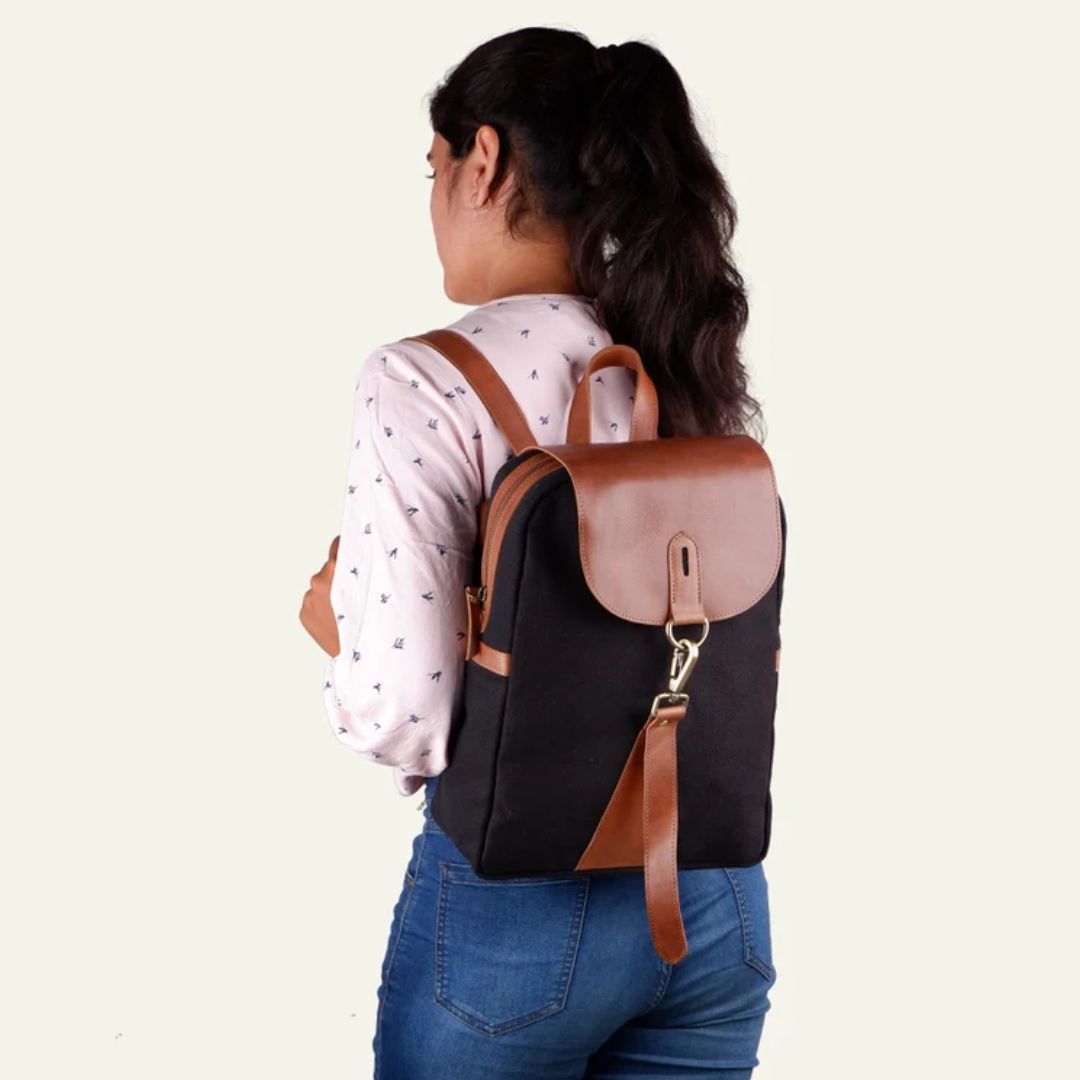 Premium Canvas Leather Backpack, Canvas Laptop Shoulder Backpack For Women, Black Canvas Backpack, Valentine’s Day Gift For Her