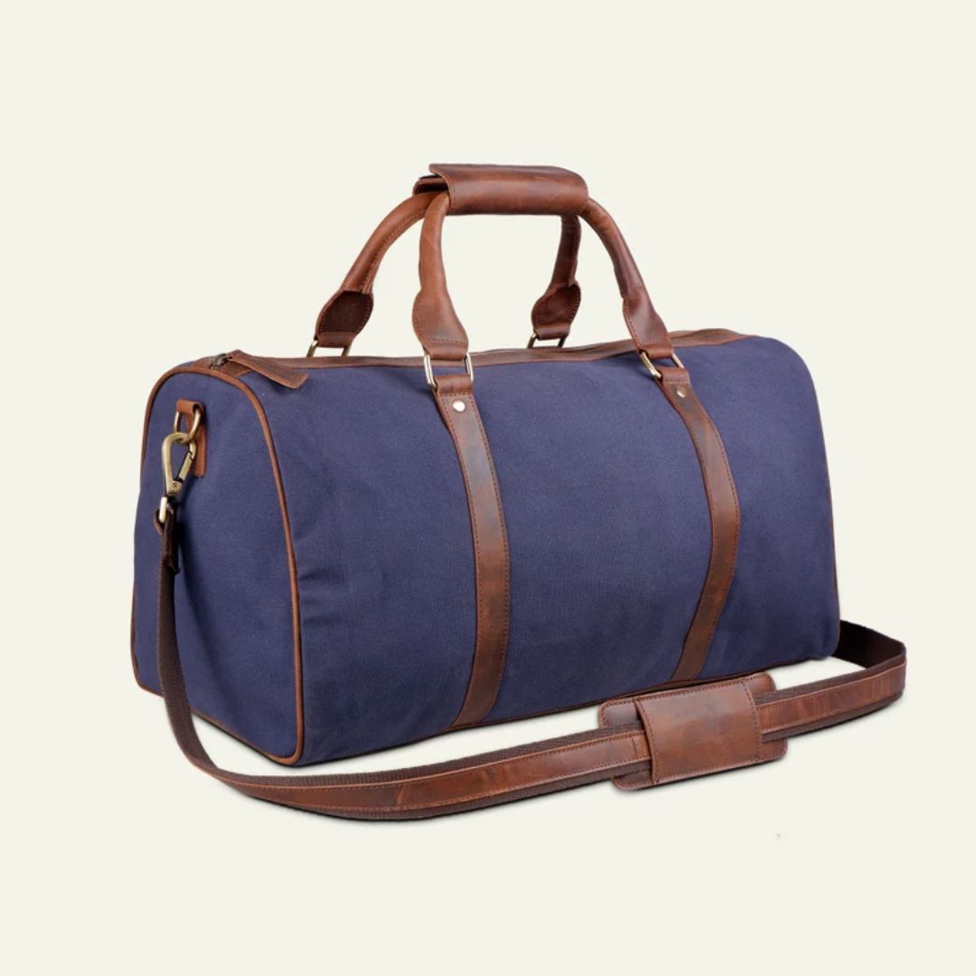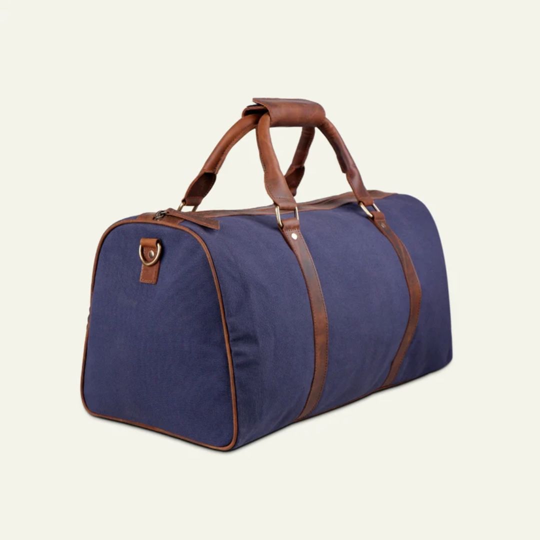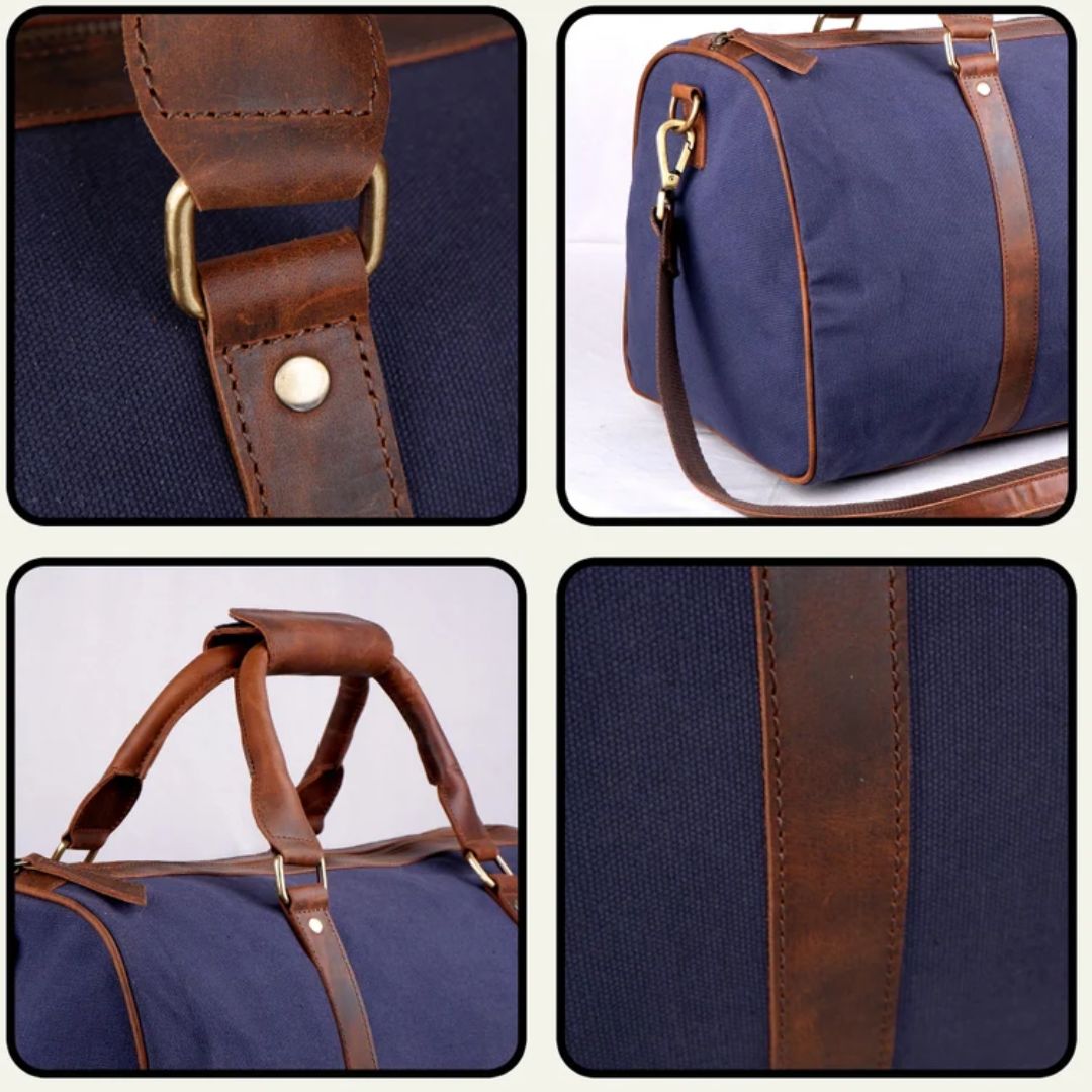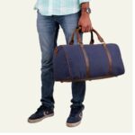 Premium Canvas Leather Duffel Bag, Canvas Travel Duffel Bag, Blue Canvas Duffel Bag, Valentine’s Day Gift For Him & Her