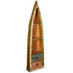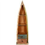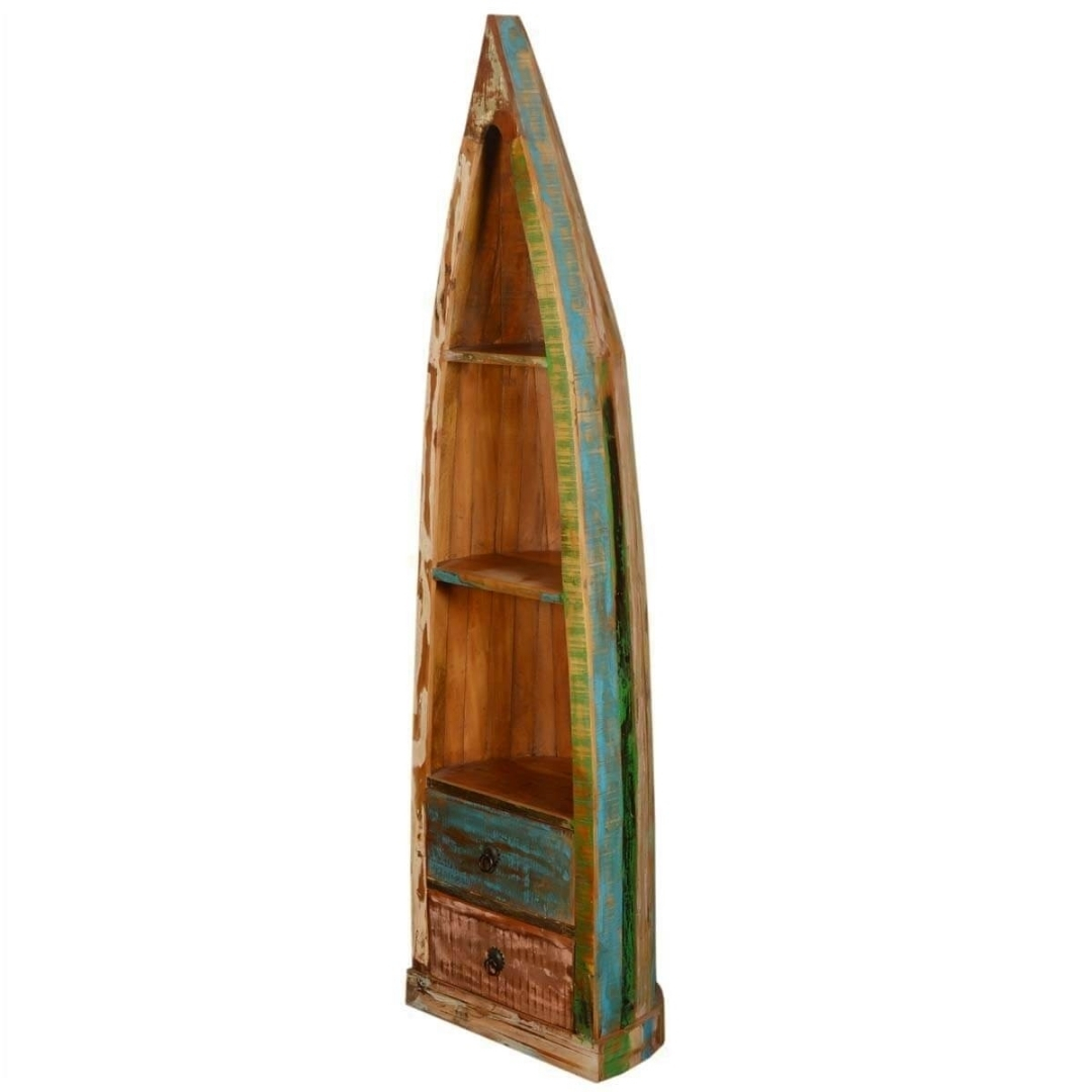 Reclaimed Nirvana 3 Open Shelf Wood Canoe Bookcase With Drawers