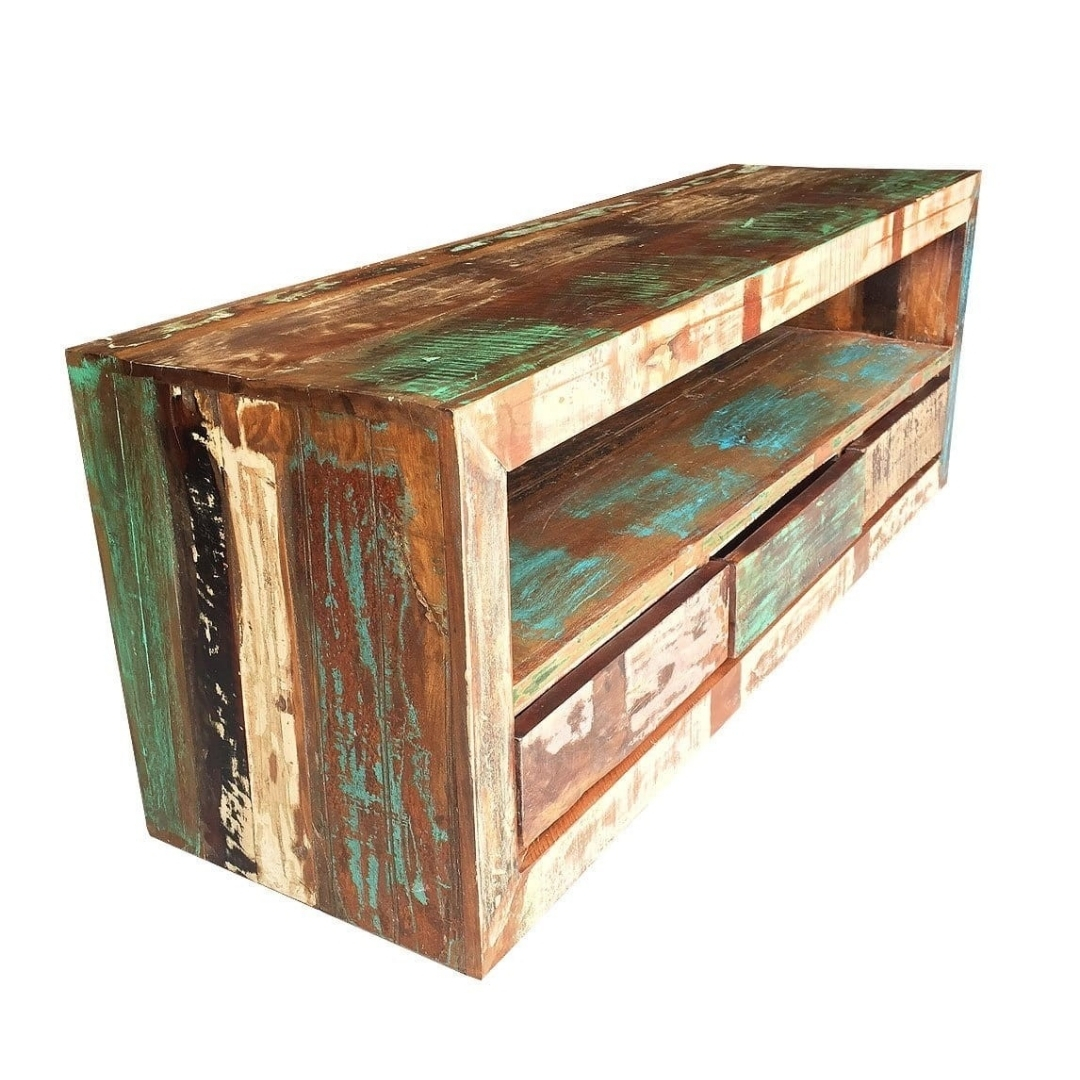 Reclaimed Nirvana Wood Tv Cabinet With 3 Drawers Natural