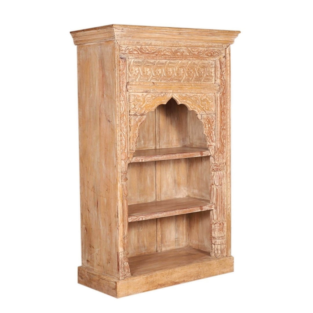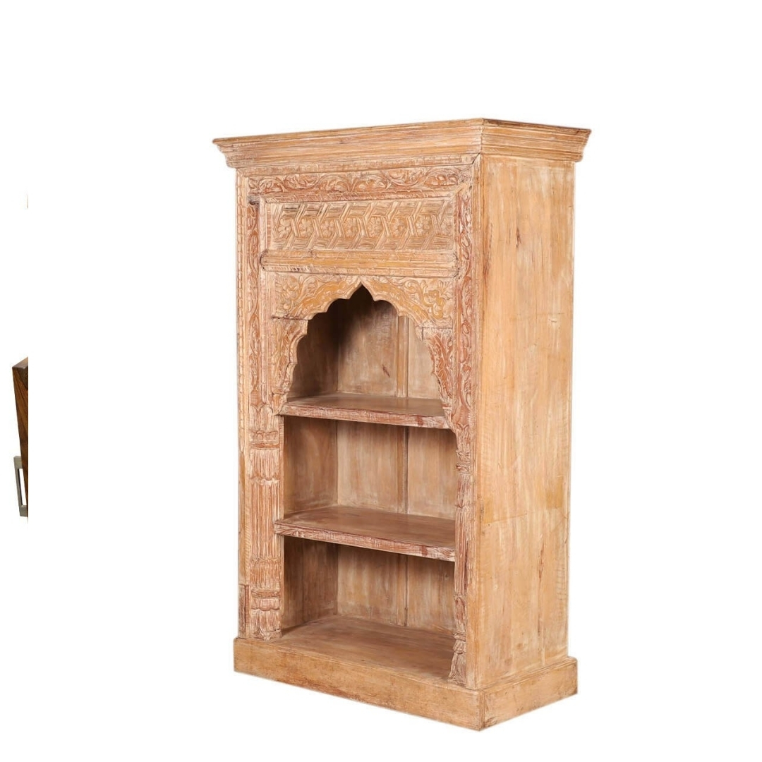 Home Storage Unit Bookshelves Reclaimed Aspen Solid Wood Hand Carved Arch Bookcase