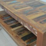 Story: Featuring bold, minimalist silhouettes, our Replenished Collection is a new take on rustic that honors the beauty of simple construction and emphasizes the gorgeous grain of natural Mango wood and old Boat Wood. Each piece is carefully built by craftsmen and hand-finished—wire brushed and sanded before a six-step application of stain, glaze, sealer, and lacquer to achieve an elegant, “organically aged” patina.