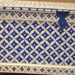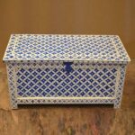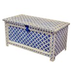 Hand Painted Pandora Bone Inlay Chest Blue Lattice