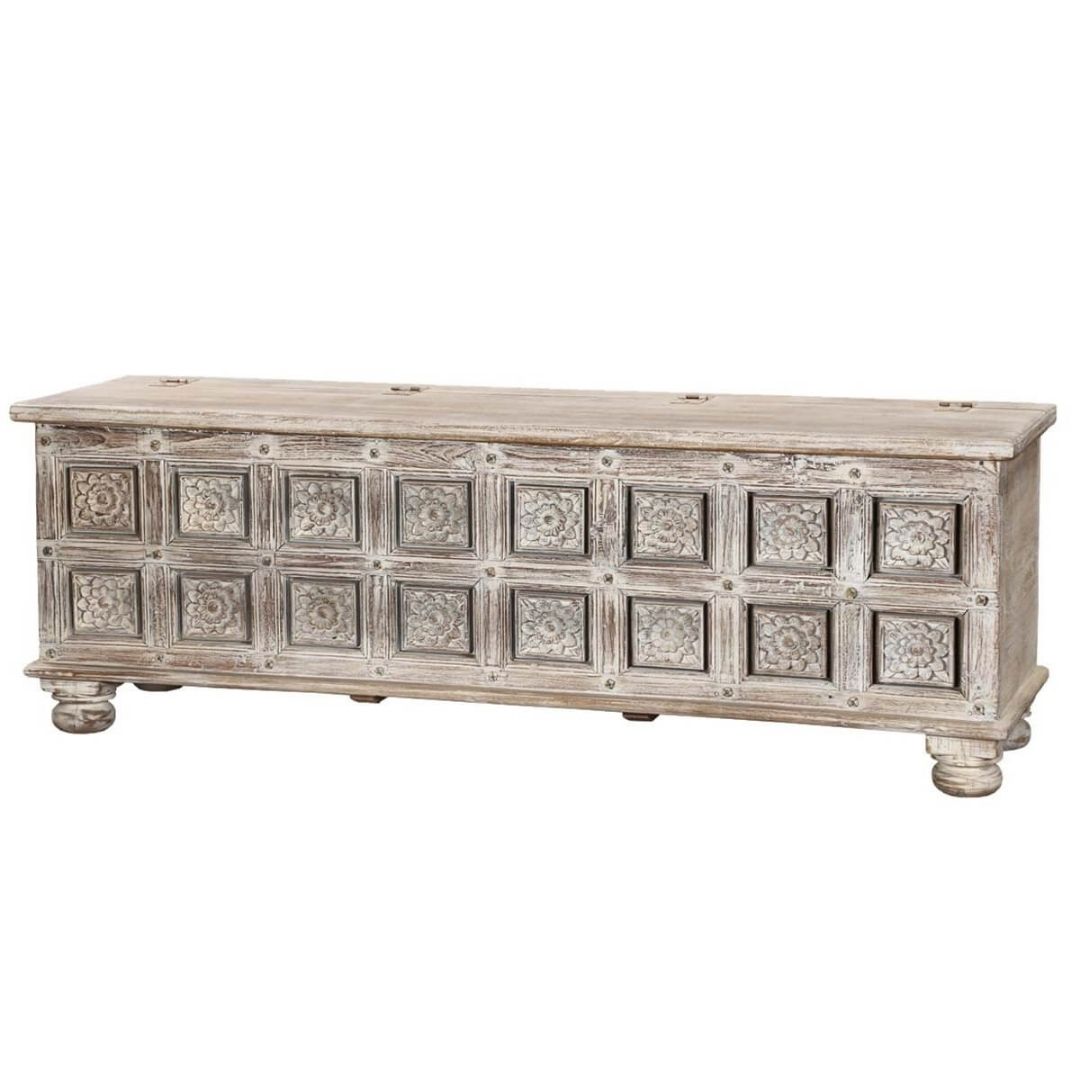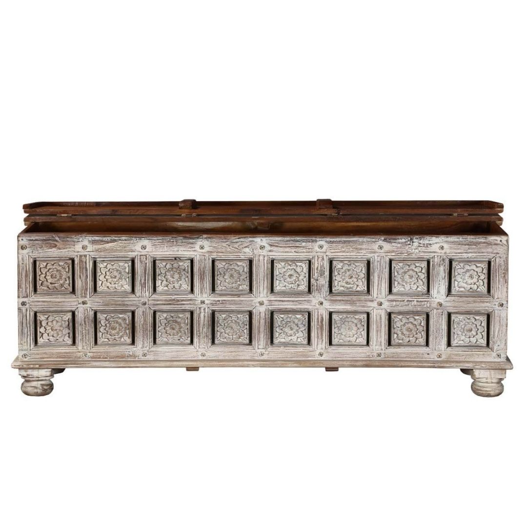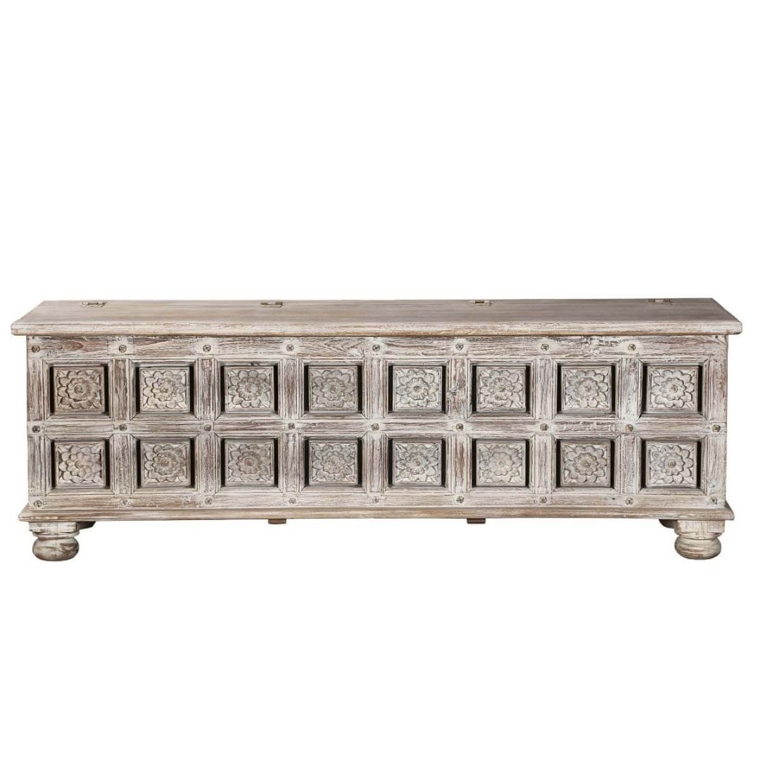 Reclaimed Salvage Hand Carved Storage Chest