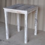 Story: This salvage Bar table Featuring bold, minimalist silhouettes, our Replenished Collection is a new take on rustic that honors the beauty of simple construction and emphasizes the gorgeous grain of natural Mango wood and old Boat Wood. Each piece is carefully built by craftsmen and hand-finished—wire brushed and sanded before a six-step application of stain, glaze, sealer, and lacquer to achieve an elegant, “organically aged” patina.
