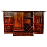 Story: This wood bar cabinet Skillfully handcrafted by Indian artisans, our Collection’s Indian lines and contemporary, minimalist styling are designed to perfectly complement its practical functionality. Wooden and upholstered tabletops are accentuated by parsons-style solid wood table bases, featuring classic natural finishes designed to easily blend with any décor style.