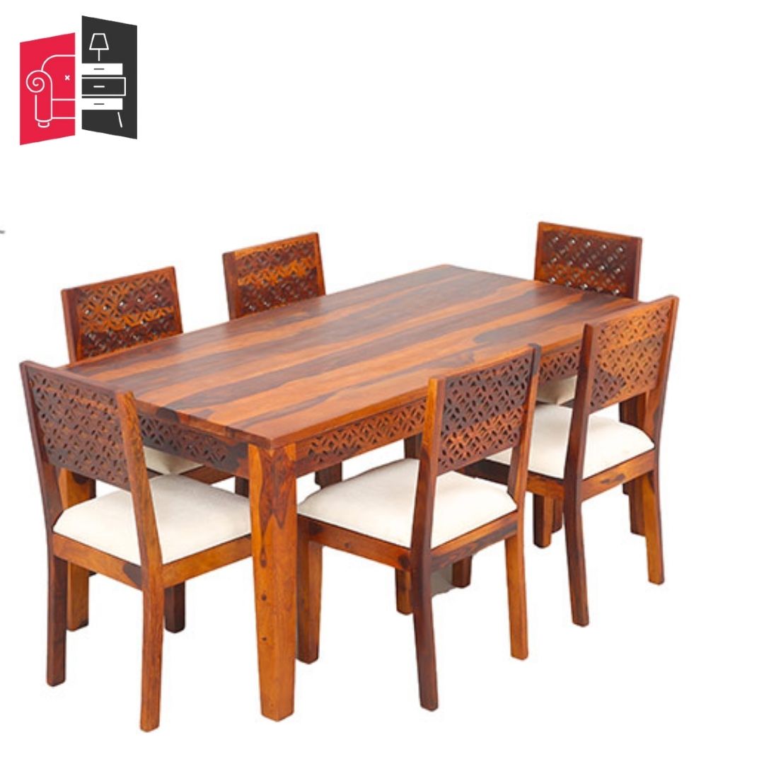 Classic Evergreen teak wood 6 seater dining table Brown Rectangular