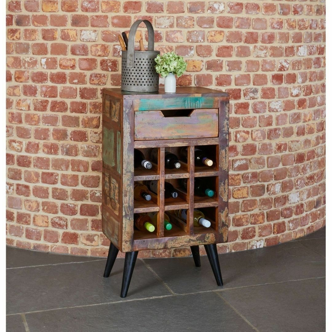 Reclaimed Nirvana Wine Rack Bar Cabinet Solid Mango Wood