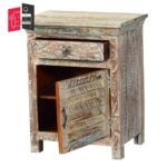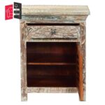 Reclaimed Nirvana  Indian Wood Bedside Table With Drawer & Door Natural